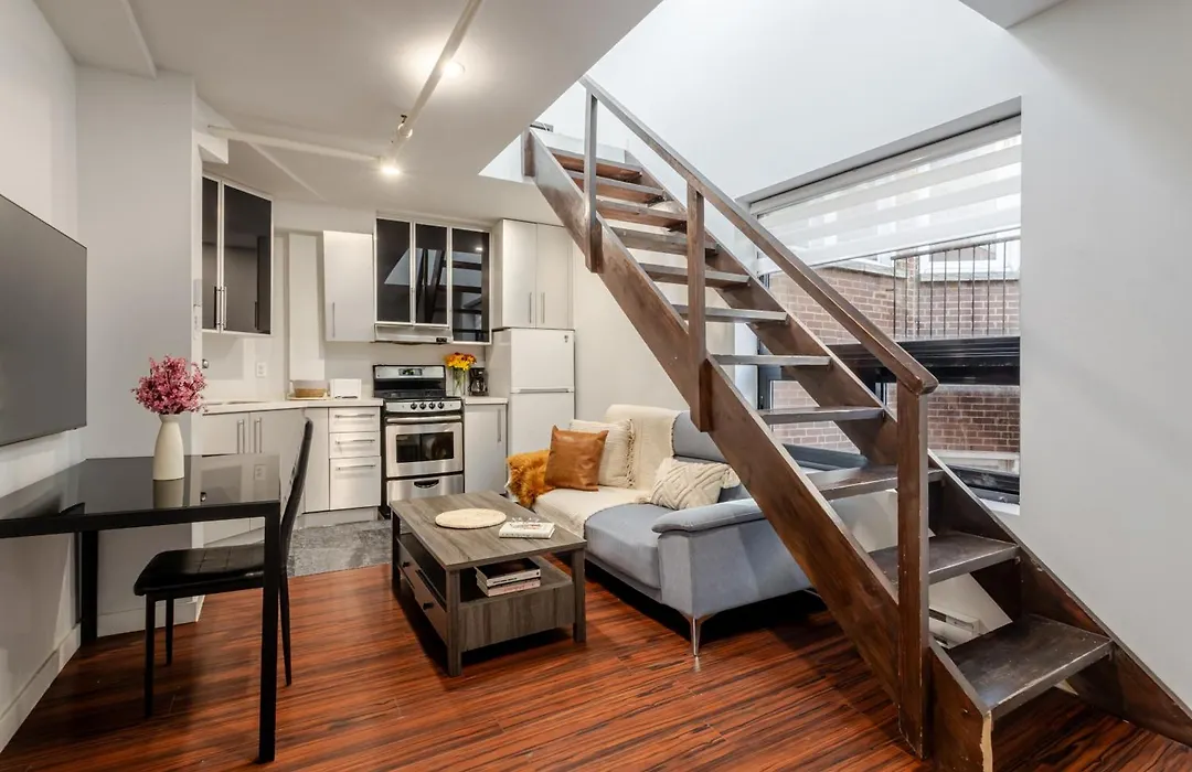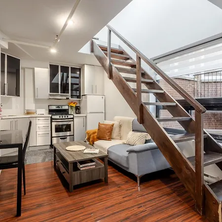 Cet appartement 1Bdr Mezzanine-Bishop-Vibe Central Mtl Montréal de 75 m² est situé dans le quartier Golden Square Mile, à seulement 5 minutes de marche de la Rue Crescent.